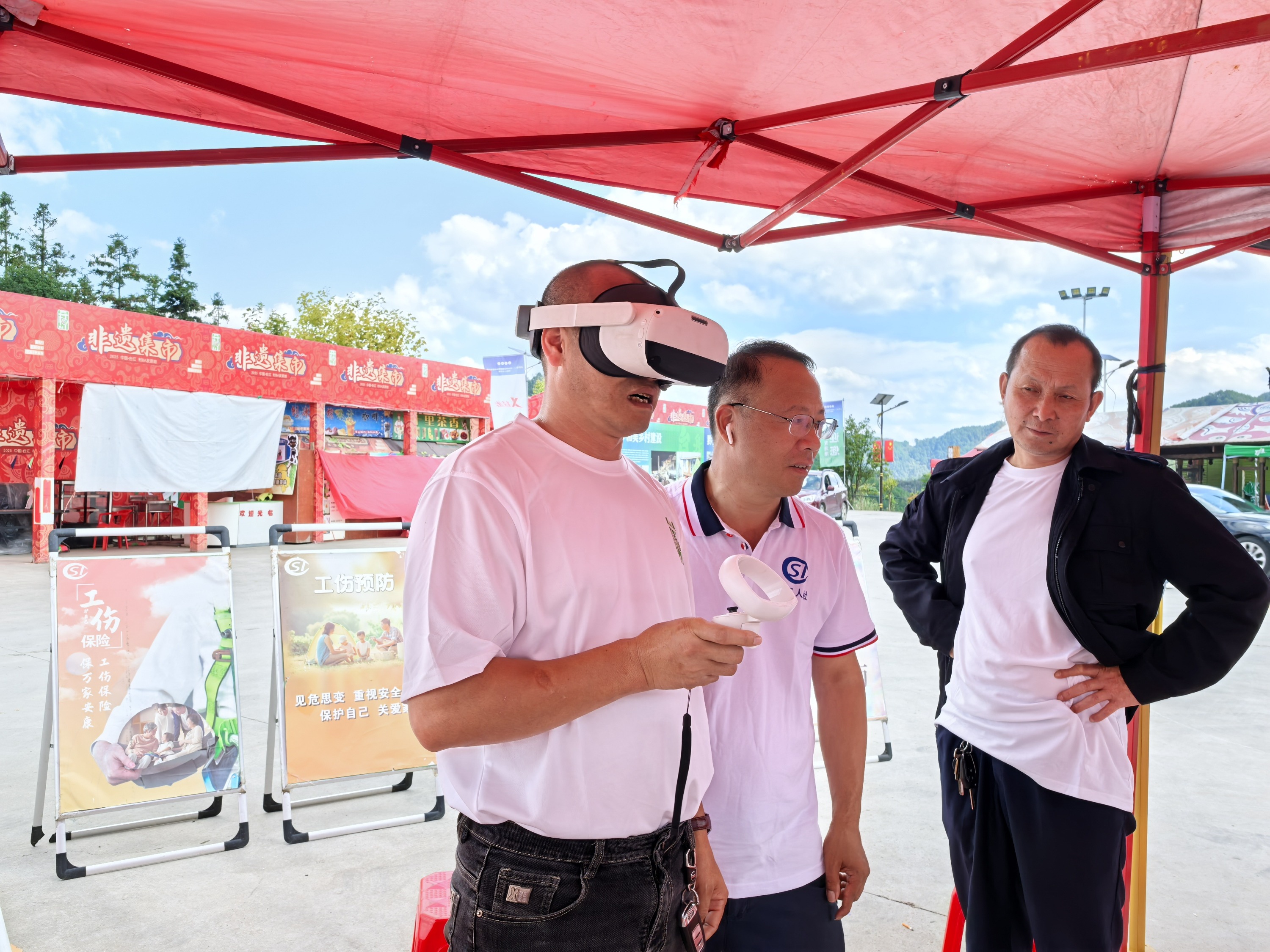 更受群众欢迎的是互动体验区。触电模拟体验让大家感受电流冲击的危险,醉酒模拟眼镜还原酒后操作的安全隐患,VR安全体验则沉浸式呈现工地、车间等场景的工伤风险点,还有模拟灭火器实操、安全隐患查找等体验设备,工作人员全程在旁指导,让群众亲手“应对”安全风险。在心肺复苏教学区,工作人员通过人体模型演示按压、吹气要点,手把手纠正群众的操作姿势,帮助大家掌握应急救援“救命技能”。