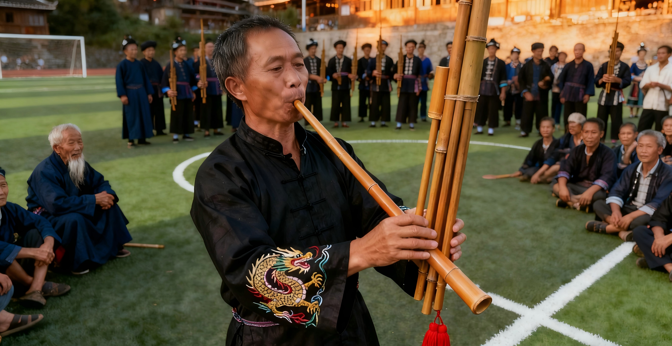 在榕江县忠诚镇王岭村,侗族队员组成的“王岭侗乡绿茵队”正将民族文化融入训练。休息间隙,队员们会围着球场边的鼓楼,用侗语合唱改编的足球歌。队长朱鹏宇介绍,球队特意准备了侗族特色的仪式——比赛前吹奏芦笙,进球后跳“哆耶舞”。“10月18日开赛那天,我们想让外地球队和球迷感受侗族文化,让足球赛场变成文化交流的平台。最期待的,还有与全省各县(市)球队的交流机会,以前只和周边县的球队踢过,这次能和遵义、贵阳、黔西南的球队同场竞技!”