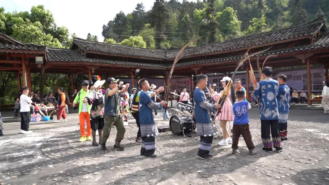 为给游客带去丰富的体验,今年景区在山脚推出了精彩的民俗展演。现场,苗家阿哥阿妹们身着盛装、吹起芦笙、跳起舞步,欢快的节奏与漫山的红杜鹃相映成趣,不少游客被这热情的氛围感染,纷纷加入其中,一同感受苗乡文化的独特魅力。