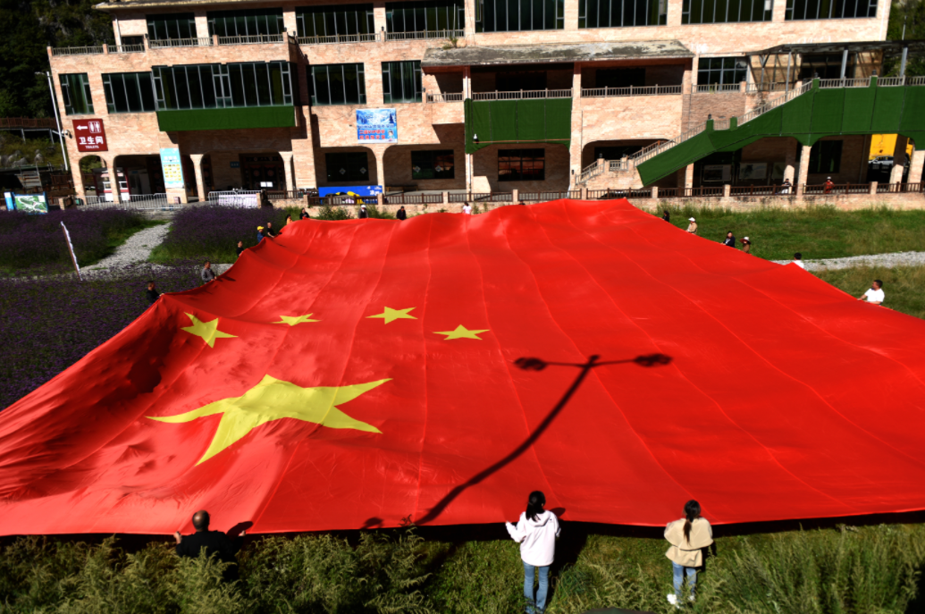 国庆佳节临近,9月29日,六盘水梅花山景区国庆氛围渐浓。游客自发齐聚于此,以展示巨幅国旗的方式迎接国庆,向祖国母亲送上祝福,共贺中华人民共和国成立76周年。