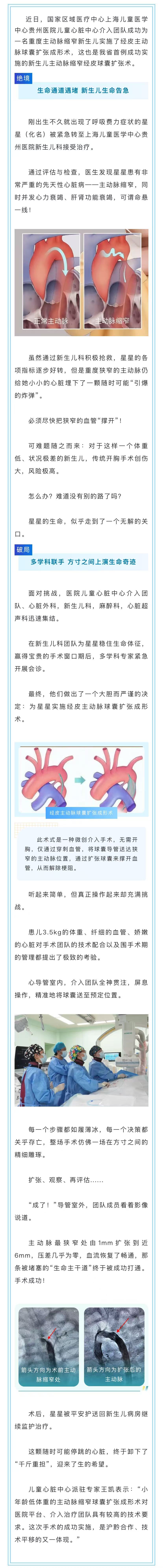 省内首例!上海儿童医学中心贵州医院成功实施新生儿主动脉缩窄经皮球囊扩张成形术