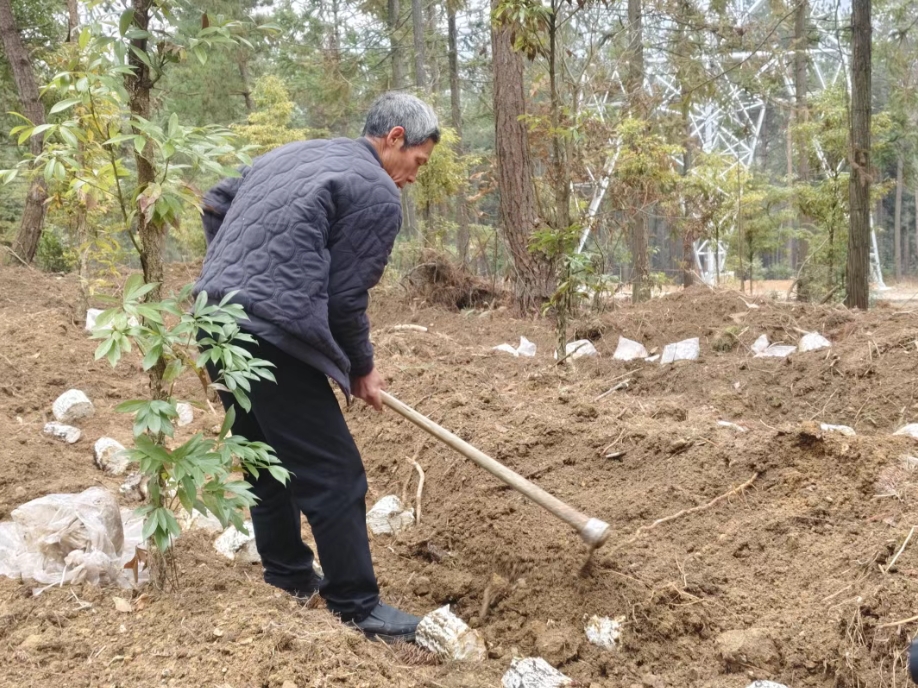 “土只能覆三公分深。”龙泉村村民田建林一边覆土一边讲解。他说:“从2025年的12月份开始,我们就到基地来务工,主要就是清杂、覆土,我们村也有土地用来发展灵芝产业,这个产业真不错,我们不仅学了种植技术,还挣了工钱。”