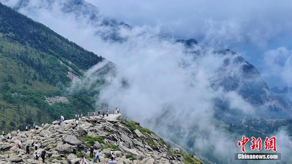 游客“打卡”秦岭云海。