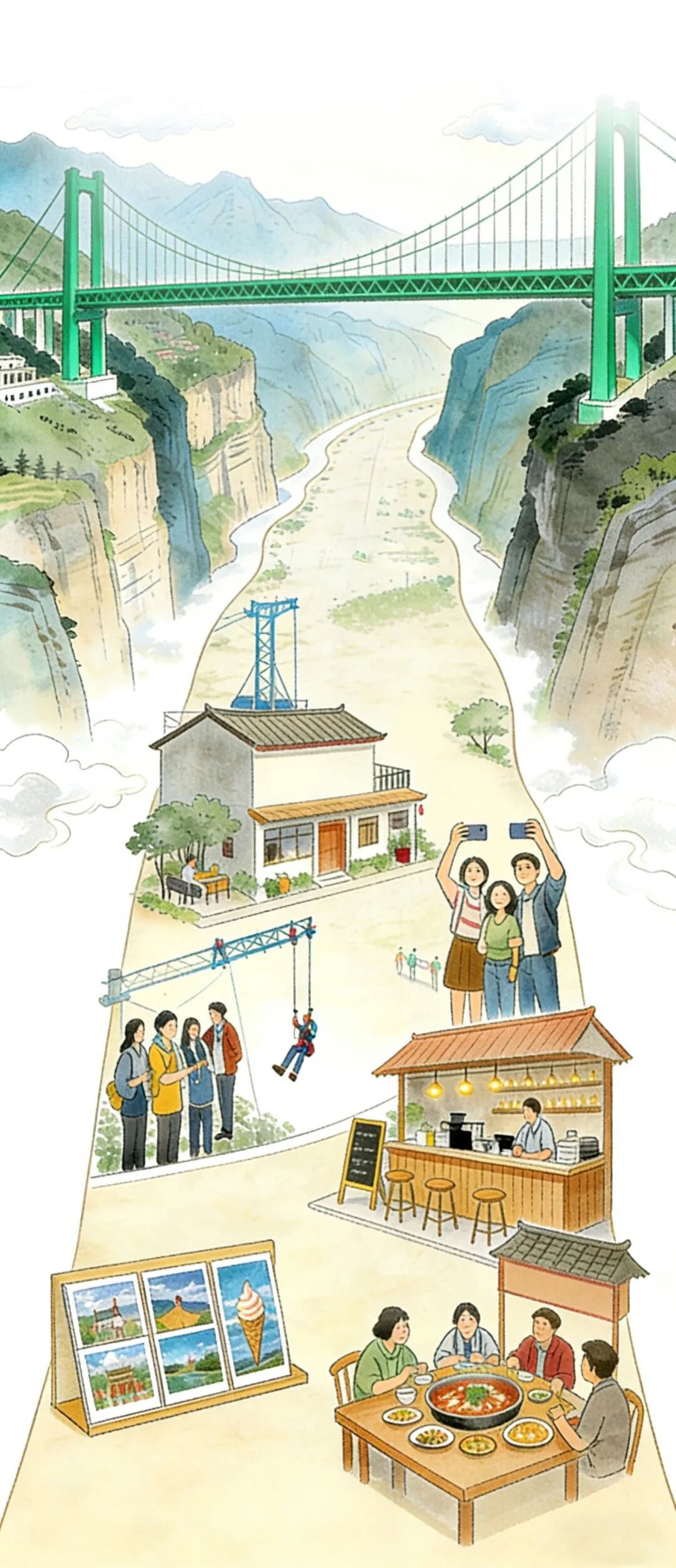 花江峡谷大桥的桥墩,扎在两岸的石头里。而大桥两岸的根基,扎在那些普通人的生活里。