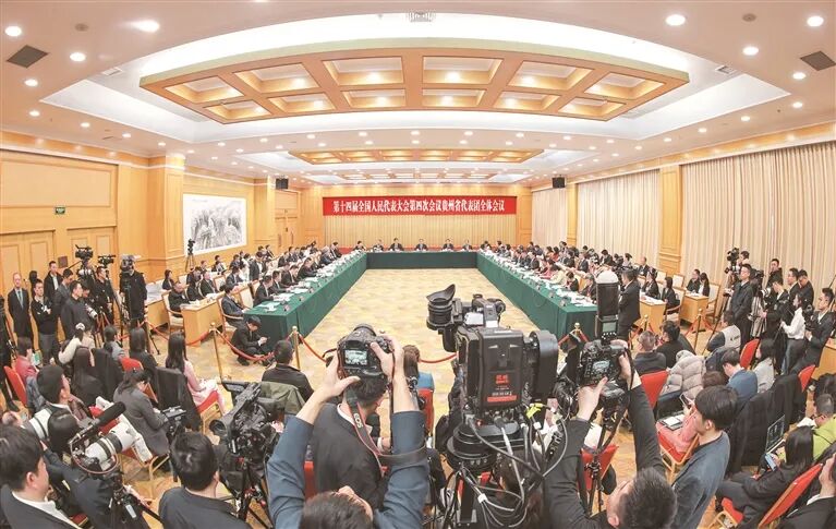 3月6日上午,出席十四届全国人大四次会议的贵州代表团在驻地举行开放团组活动。图/贵州日报