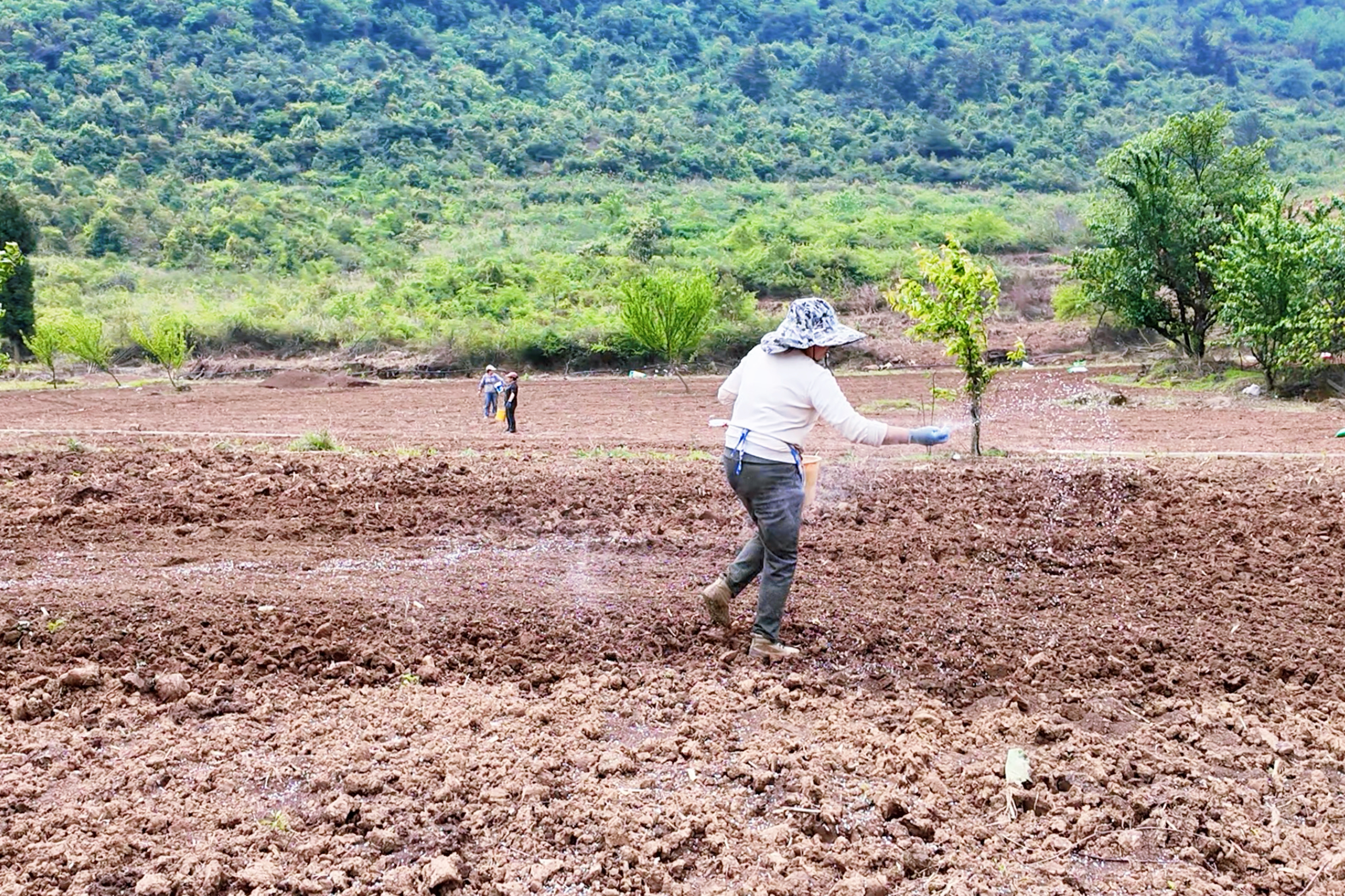 坪山村的两块连片土地采用“公司+基地”模式,是与专业农业公司深度合作的种植区。最近,村民们正按照统一标准进行打孔、放苗、覆土等工序。“这两块地种的是市场需求量大的红辣椒和青辣椒品种,从育苗到移栽都有严格的技术规范,用的也都是有机肥料。总共有50亩,预计可生产约15万斤辣椒。”坪山村村委会副主任罗顺国介绍,得益于公司的订单兜底,辣椒不仅销路无忧,公司还提供全程技术指导和保底收购,让农户们吃下了“定心丸”。这种模式有效盘活了村里的闲置土地,也让周边约40名农户通过务工和分红实现了家门口增收。