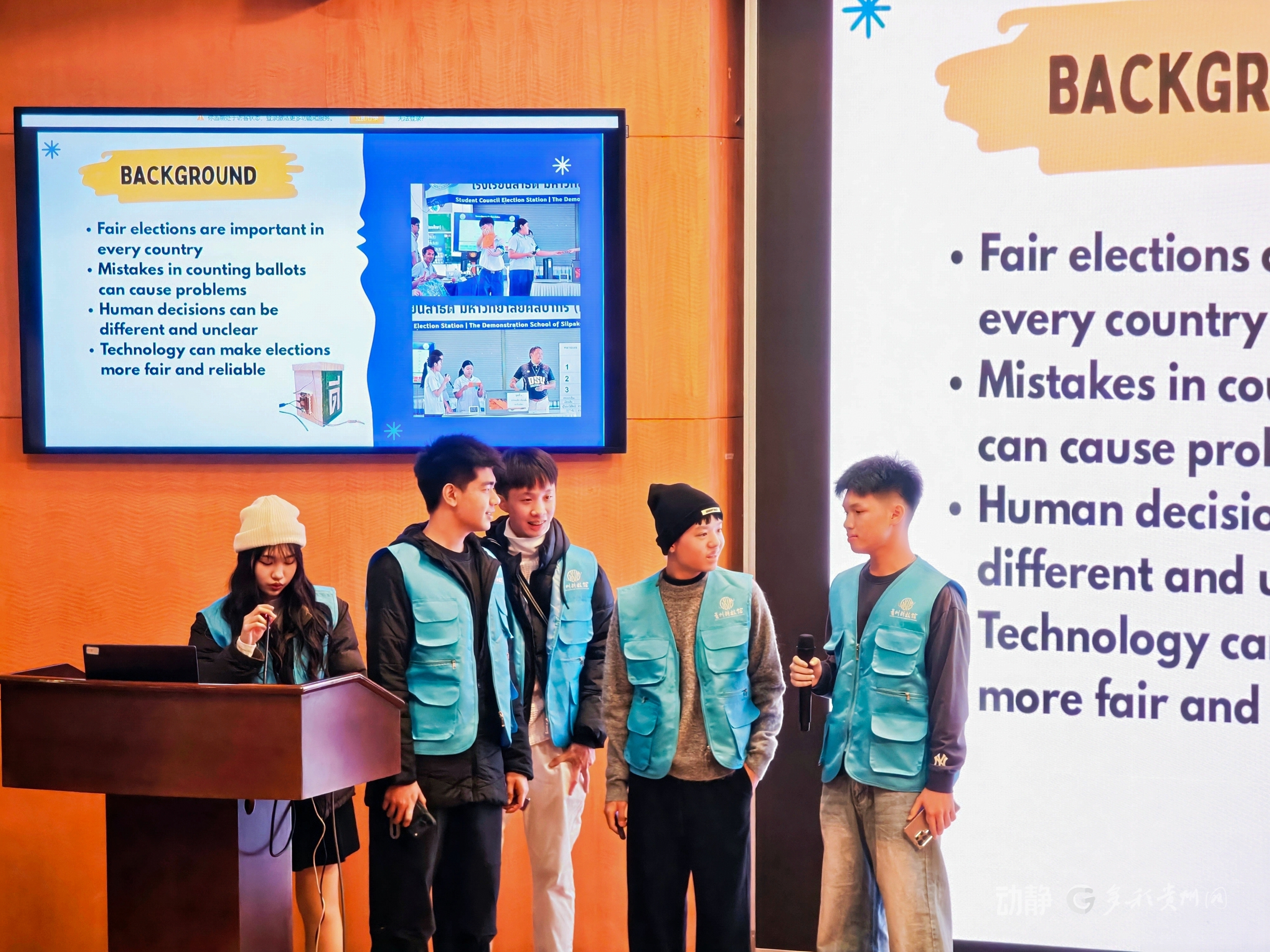 开营仪式上,泰国艺术大学附属示范高中的学生Smart及其团队,以及贵阳一中的学生杨予墨,分别展示了各自的科技创新项目。两校教师代表也分别介绍了学校的教育特色与科学类课程设置,分享了各自的教学经验。