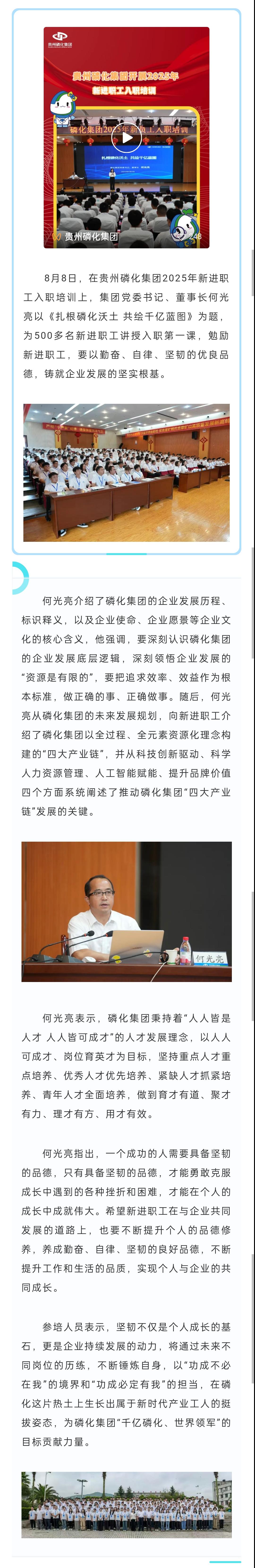 何光亮为新进职工讲授入职第一课