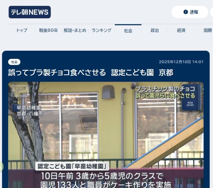 综合日媒18日报道,日本京都府一所幼儿园近日发生133名儿童误食塑料装饰品事件,目前已有3名儿童出现腹痛症状。