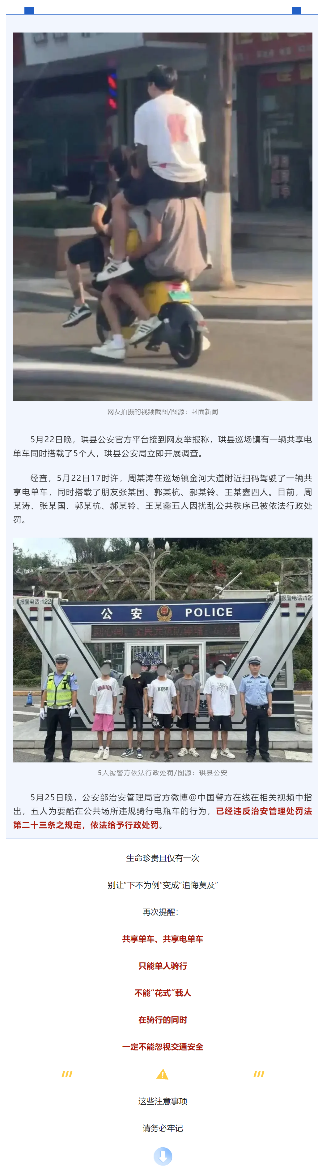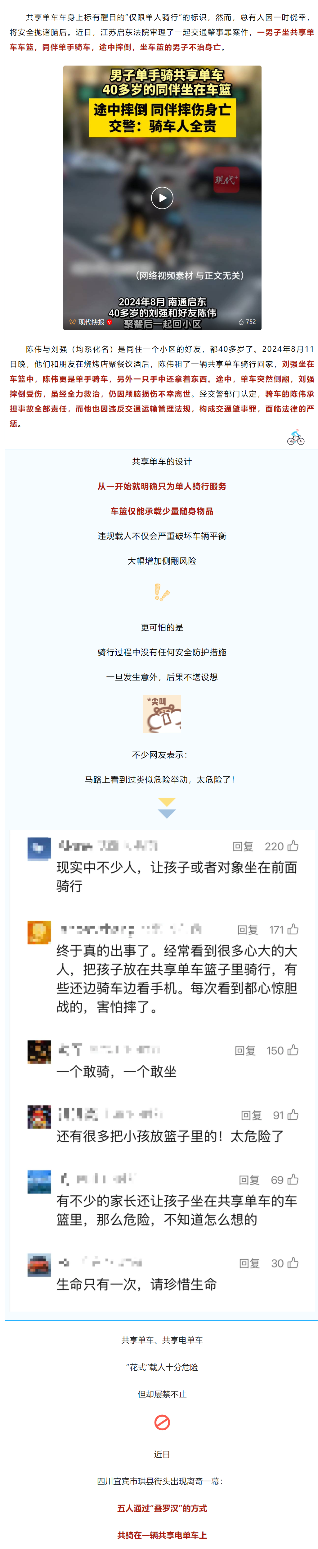 40岁好友同骑共享单车:车篮载人+单手骑行,一死一刑!