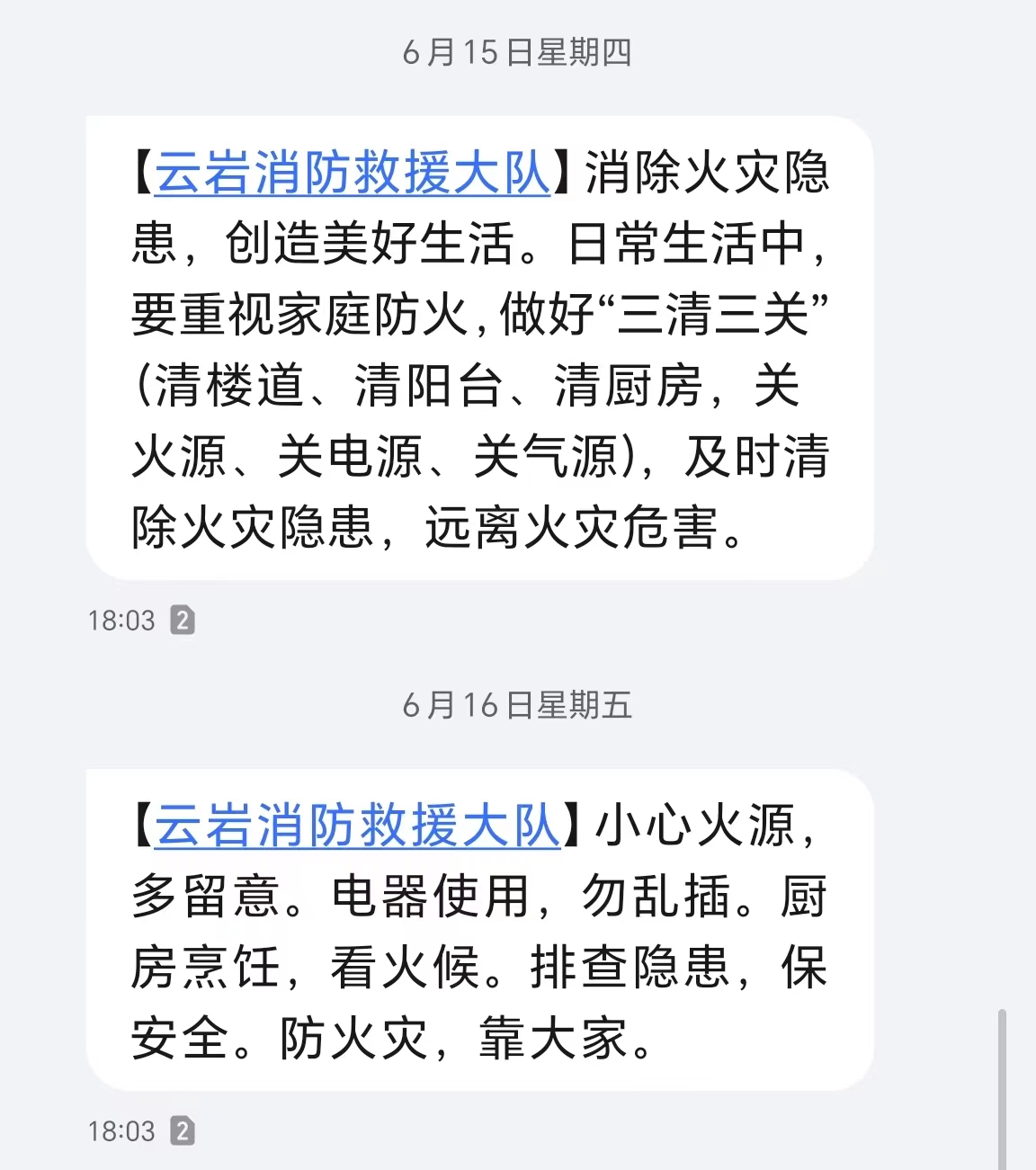 以"掌上交流”为中景,建立“绿色”通道。不断强化信息触达,以加强消防安全教育、培育消防安全意识、提高消防安全素质为目标,用信息打开宣传“平台”。制作消防安全提示,通过动静贵州、百姓关注等新媒体平台,制作群众喜闻乐见的消防安全科普视频提示5个推送于辖区群众。全面提升消防安全意识,培育消防安全“明白人”。发送火灾警示短信,联合电信、移动、联通三大运营商,全区累计向居民发送消防安全小提示70万余条,拓宽强化线上监管,综合运用微信工作群、远程视频连线、电话跟踪等手段,对辖区重点场所消防安全进行在线跟踪督导,最大限度延伸宣传触角。
