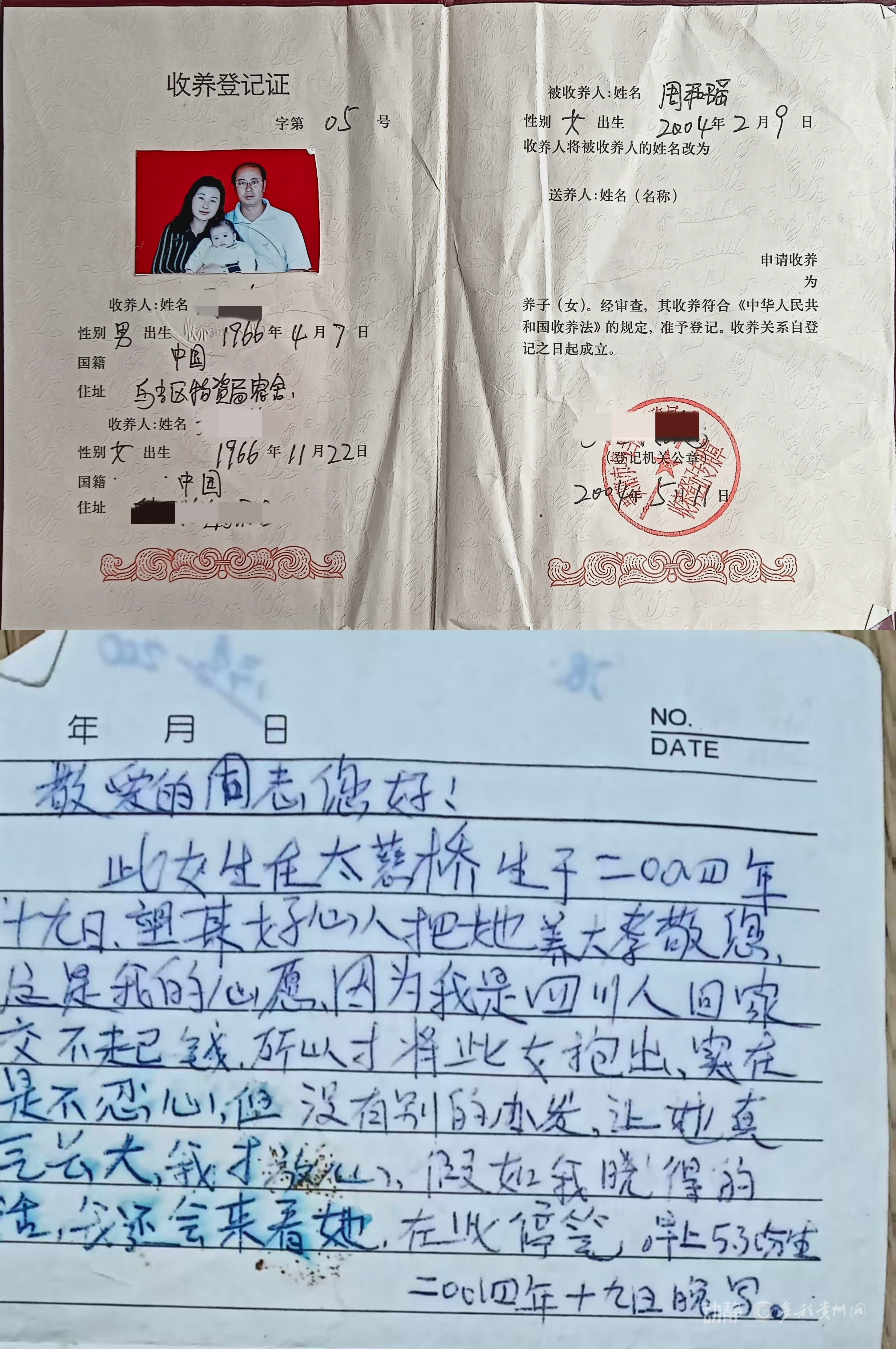 2004年2月19日,一个女婴被遗弃在贵阳太慈桥附近一户人家的门口,襁褓中留着一张字条:“实在是不忍心,我还会来看她……我们是四川人,当年因为在贵州交不起钱,没办法才把她放在那里。”
