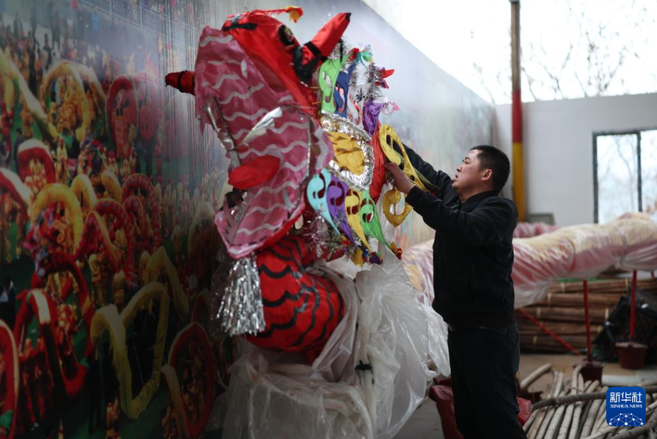 代鑫在查看一条已经制作完成的毛龙。新华社记者刘续摄