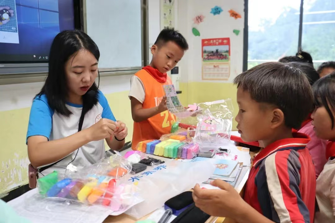 贵师大研支团志愿者在七彩小屋为孩子们授课