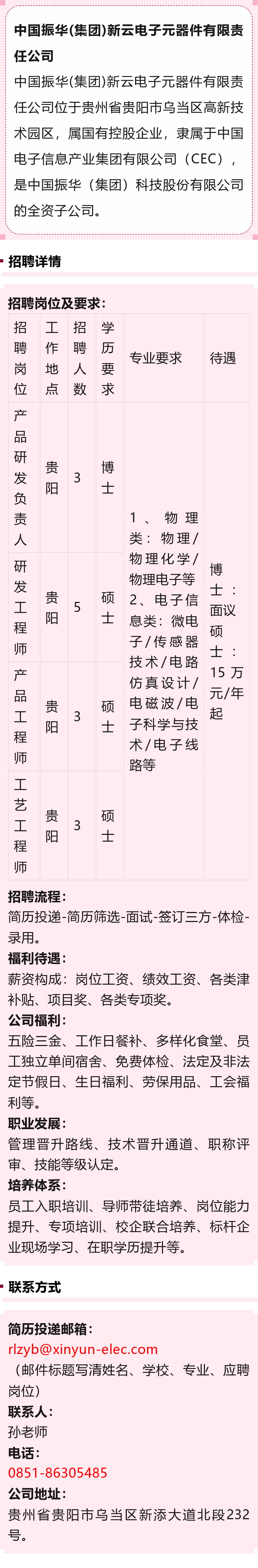 【贵阳市】中国振华(集团)科技股份有限公司子公司招聘!年薪15万+!五险三金!
