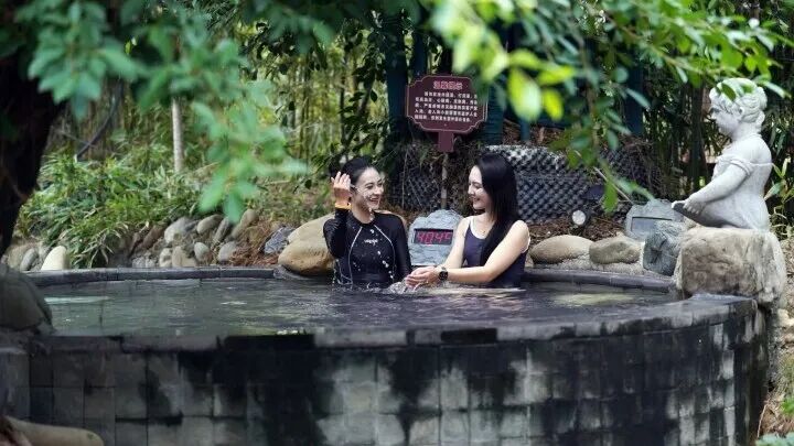 坝黄七姊妹山温泉是天然地热温泉水,富含碳酸氢钠、偏硅酸等多种对人体有益的矿物质与微量元素,各类温泉池水温约在28℃至43℃之间,适合四季浸泡并具备疗养价值,吸引了追求健康养生的中老年群体,也让景区收获大批“回头客”,在此举办家庭聚会、亲友联谊、公司团建等活动。