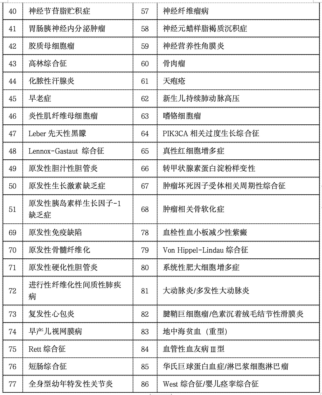①国家两批罕见病目录内的疾病确诊患者(见文末附表)