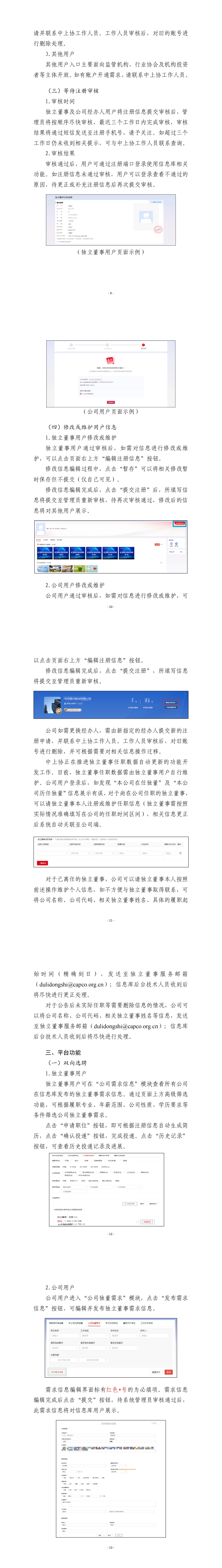 自互联网信息库上线以来,中上协根据改革工作部署和市场实践需求不断优化完善相关功能,目前已开发双向选聘、培训学习、制作工作记录、履职评价专区,开设“独董案例”“独董观点”“独董动态”等专栏,并提供相关法律法规和资料检索下载服务。