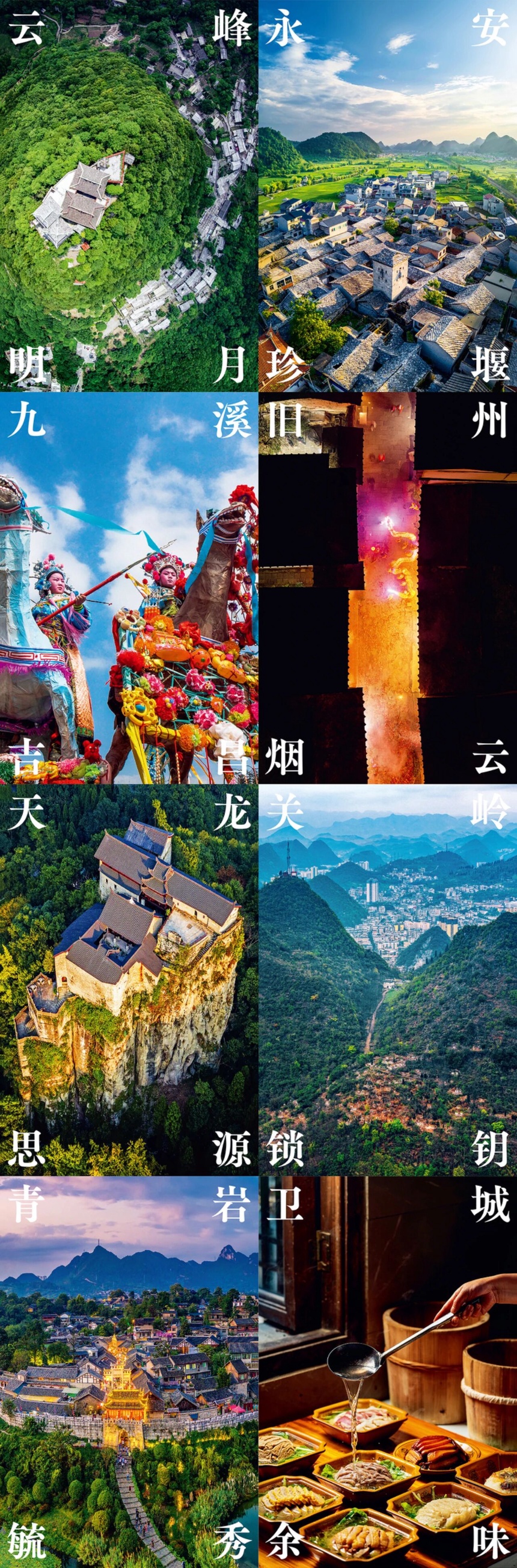 “这17处文化景观的名称都含双关之意,既是地理坐标,也是历史与愿望的结晶。如家国安顺,既点明安顺作为‘屯堡家国六百年’的核心文化区,也隐喻此地六百年来对西南安定平顺的深远影响;万峰兴义既指兴义万峰林的世界地质奇观,也寓意近现代贵州人才辈出、后发赶超的蓬勃气象。”《屯堡·家国六百年》主编范烨介绍,在视觉呈现方式上,本书创新设计了一套基于屯堡建筑特征的文化标识系统,以“城、县(市)、乡镇、村落、关隘”对17个游学点位进行行政层级和功能的划分,并结合手绘地图与节庆历法对文化空间和时间维度进行双重呈现;此外,还组织两次实地拍摄,并向全国广泛征集,最终从4万余幅图片中精选出223张用于本书。