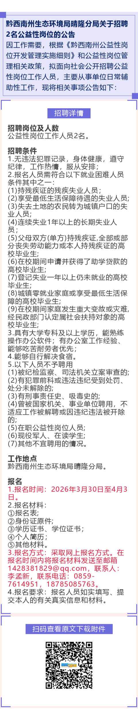 【政府机关】生态环境局招聘!残疾人士可报!