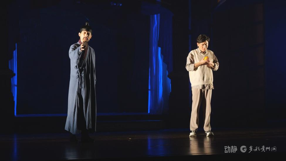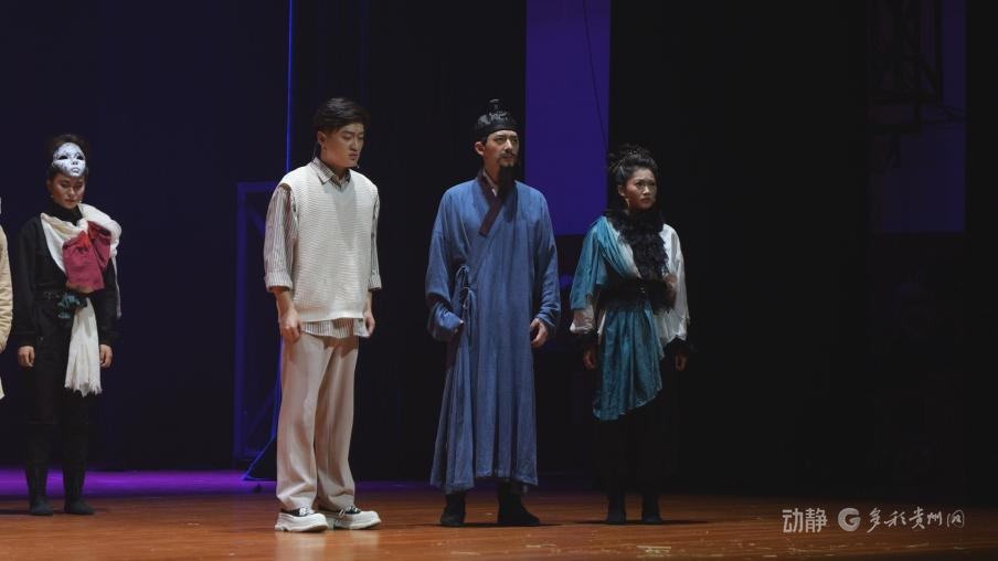 谈到剧本的改编过程,许伟透露,团队花了近两三个月的时间,推翻了好几轮方案,甚至连演员也一起参与围读,共同打磨。“我们加入了很多贵州的小细节,比如洋芋、丝娃娃,这些都是很接地气的情感载体。”在舞台呈现上,他们尝试了一些在贵州戏剧中较少见的表现手法——“呕吐”被用来象征被枷锁禁锢的状态,而当角色挣脱束缚回归本真时,便是迷雾散去的时刻。“我们希望观众自己去感受,在碰撞中解开疑惑,找回本心,知行合一地去完成心中想做的事情。”