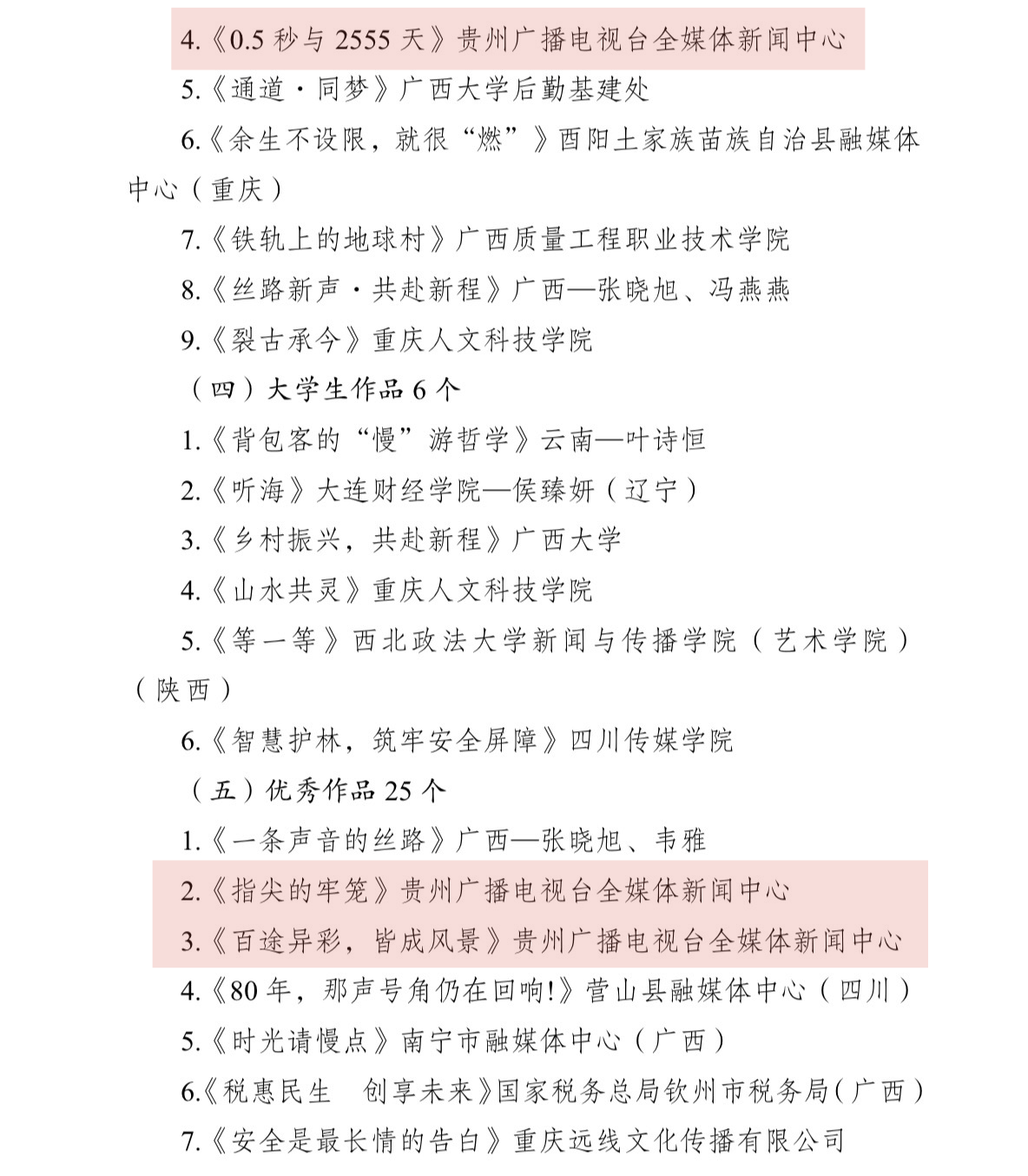 贵州广播电视台全媒体新闻中心选送的14件作品获奖,其中一等奖2个、二等奖2个、三等奖3个、优秀奖7个。