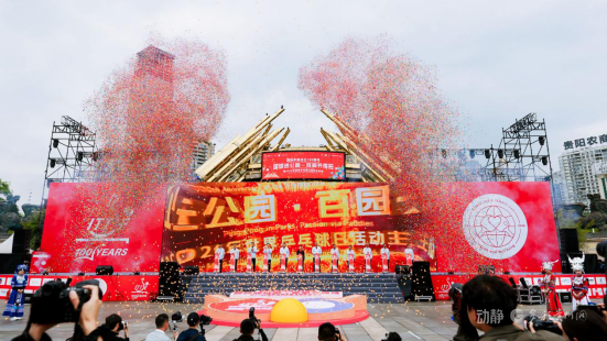 4月20日,国际乒联成立100周年“国球进公园·百园齐挥拍”暨2026年世界乒乓球日活动主会场在贵阳筑城广场隆重举行。本次活动由国际乒联基金会支持,中国乒乓球协会、贵州省体育局、贵阳市人民政府联合主办,以乒乓为媒,致敬国际乒联百年征程,点燃全民健身体育热潮。