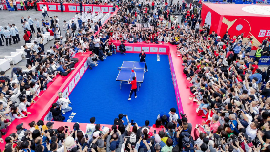 现场整齐排布100张乒乓球台,吸引全国1000余名爱好者参赛,年龄跨度从7岁至77岁,奥运冠军刘诗雯亲临现场,与市民面对面切磋球技、共赴“百台千人赛”,传递国球魅力。