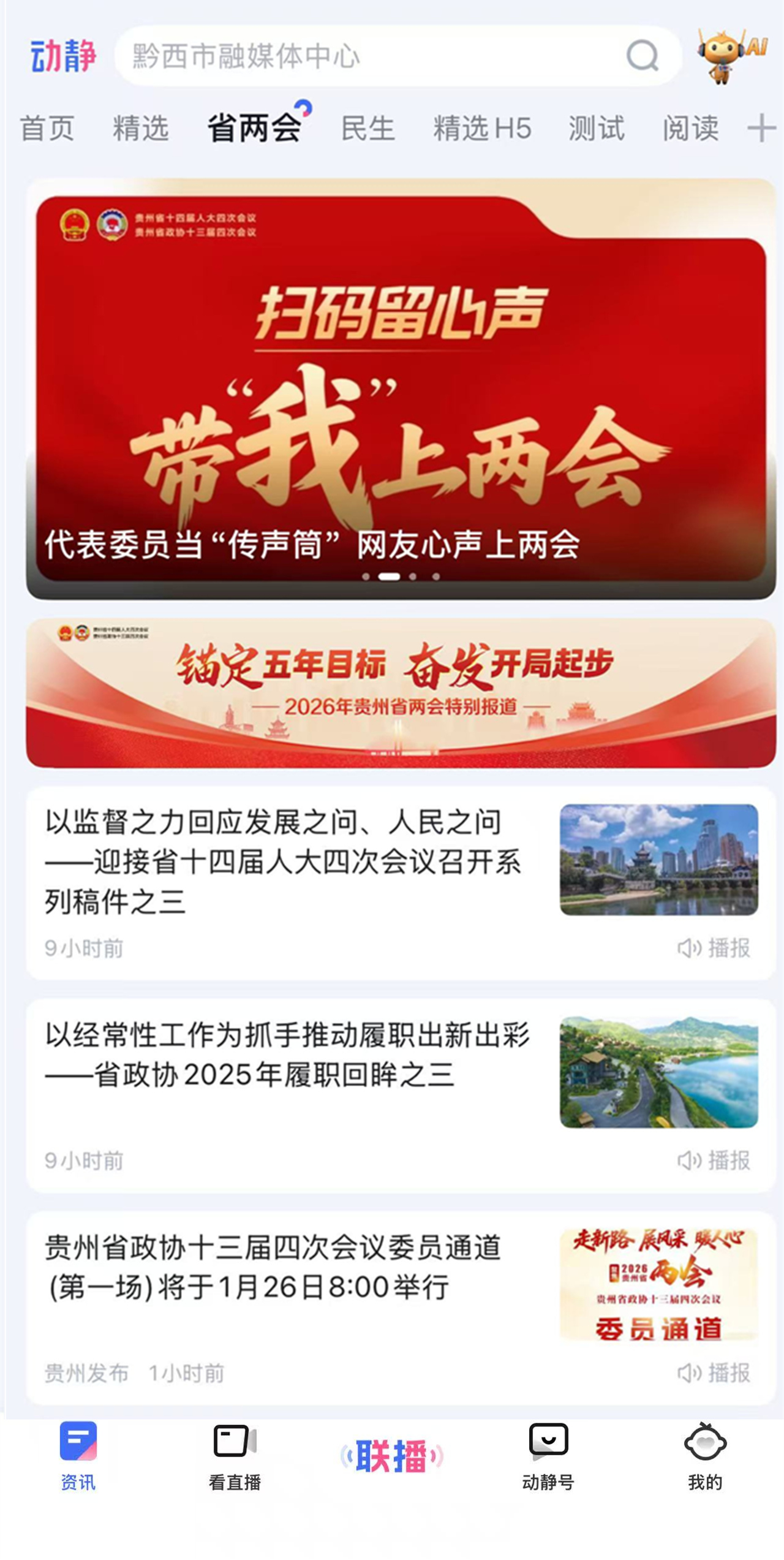 2026年贵州省两会即将召开,动静新闻客户端“省两会”频道今日重磅上线。频道依托图文、海报、短视频、4K直播、H5、AI视频等多元融媒体产品,全方位聚焦两会盛况、传递民生心声,为“十五五”开局凝聚奋进共识。