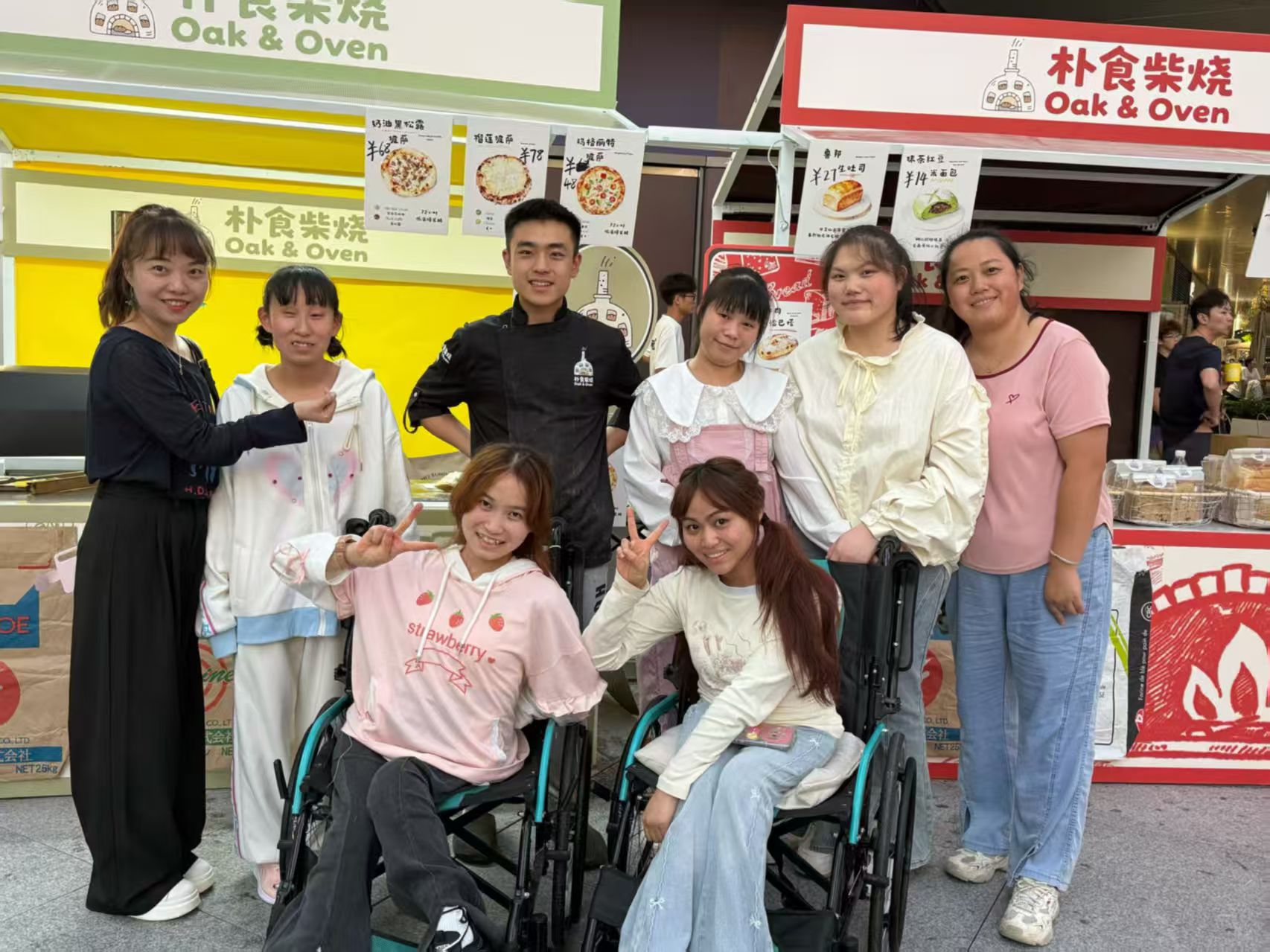 10月3日中午,摊位前迎来了一群特殊客人——来自贵州昕霖特殊儿童关爱中心的孤独症患者。他们,是来给自己的“烘焙老师”杨堰翔加油、点赞的。
