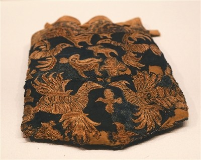 辽代绫锦缘刺绣皮囊。中国丝绸博物馆供图