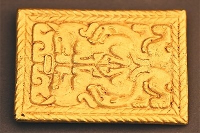 战国时期虎马咬斗纹金饰牌。内蒙古文物考古研究院供图
