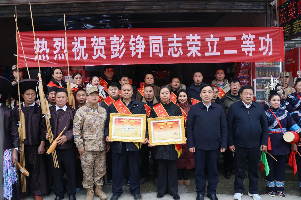 2月8日,剑河县军地联合为荣立二等功的现役军人彭铮家属送上立功喜报,将荣誉与关怀送到家中,把党和政府的温暖传递到立功军人心坎上,让功臣之家尽享荣光、倍感尊崇。