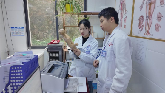 莫明仙也是定向医学生,在剑河县南寨镇卫生院用中医技术为村民排忧解难。“以前颈肩腰腿痛、痛风这些毛病,要坐车三个小时去县医院治疗。”62岁的绕号村村民潘明患痛风多年,脚肿痛时连路都走不了,经莫明仙针灸、中药调理后,疼痛明显缓解。规培期间,莫明仙不仅掌握了现代急救技能,还深耕中医适宜技术,在颈肩腰腿痛、中医内科疾病诊治上积累了丰富经验。“农村老人偏爱中医,副作用小、花钱少,我就多练本事,让乡亲们少受病痛折磨。”莫明仙说,她经常会参加州里、县里组织的中医技能进修和培训,不断精进技艺。