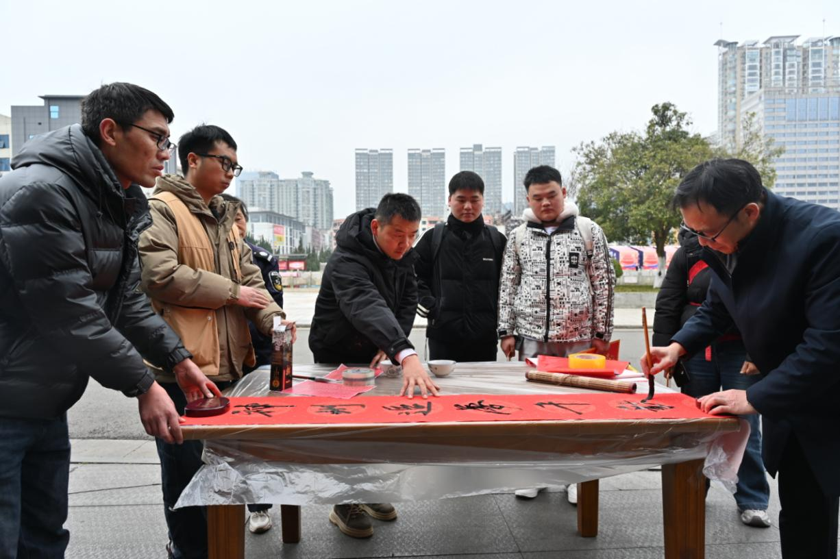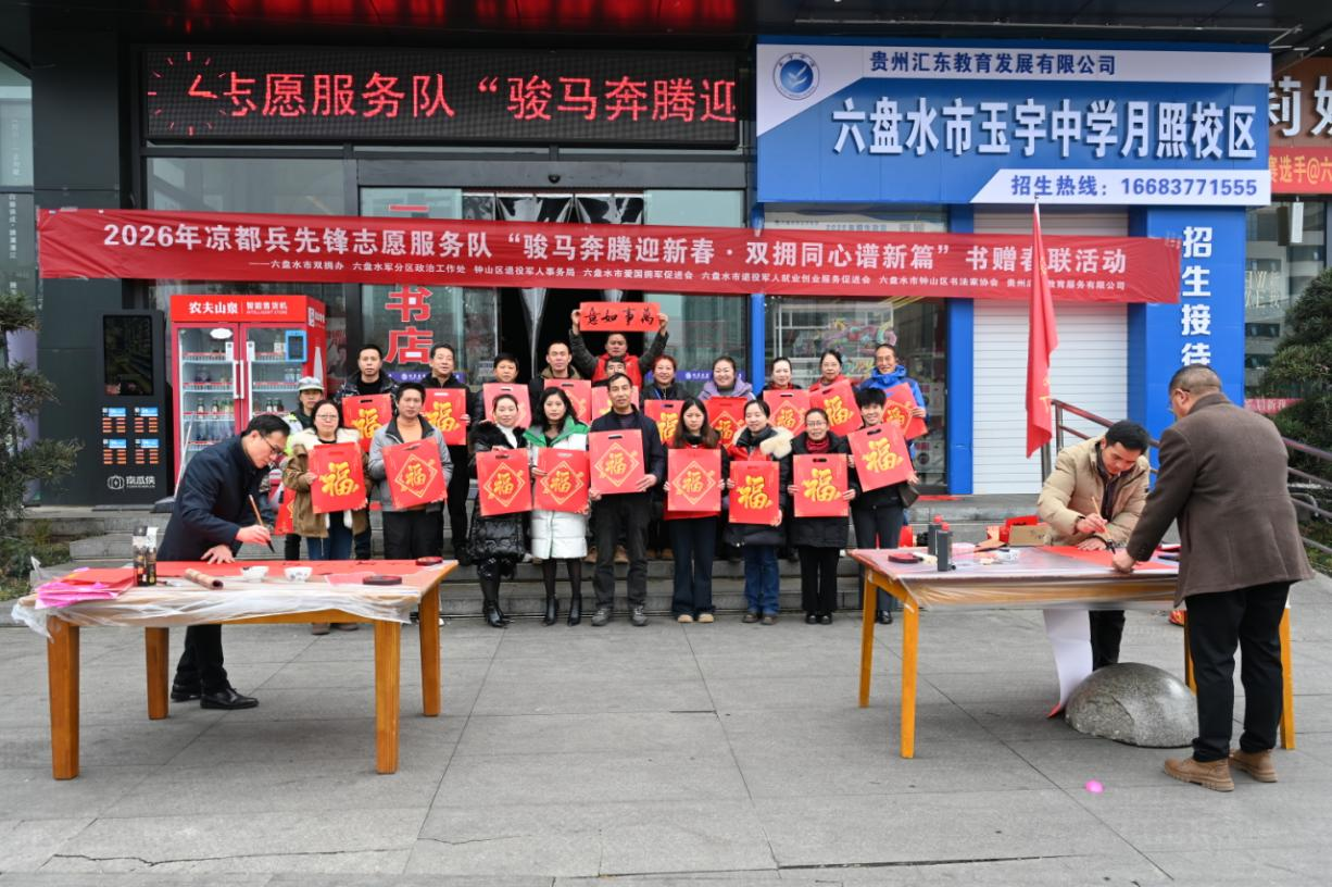 近日,六盘水市人民广场润墨书店门口人头攒动,翰墨飘香,由六盘水市双拥办、六盘水军分区政治工作处等单位主办的“骏马奔腾迎新春·双拥同心谱新篇”书赠春联活动在此隆重举行。本次活动通过书写并赠送春联的形式,不仅传递了新春的祝福,更弘扬了拥军优属、拥政爱民的优良传统,展现了军民团结一家亲的深厚情感。