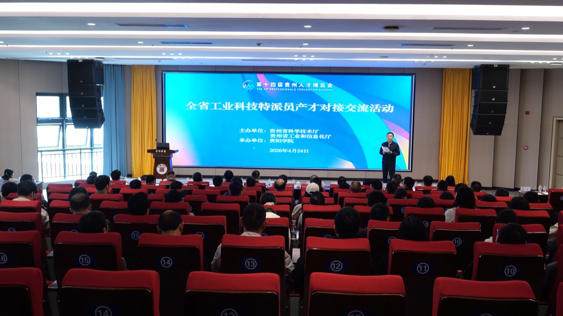 在贵阳,一场产学研双向奔赴的对接活动,正在为贵州新型工业化注入新动能。4月24日,由省科技厅、省工业和信息化厅联合主办的2026年全省工业科技特派员产才对接交流活动在贵阳学院举行,这也是我省“人才日”暨第十四届贵州人才博览会的重要活动之一。