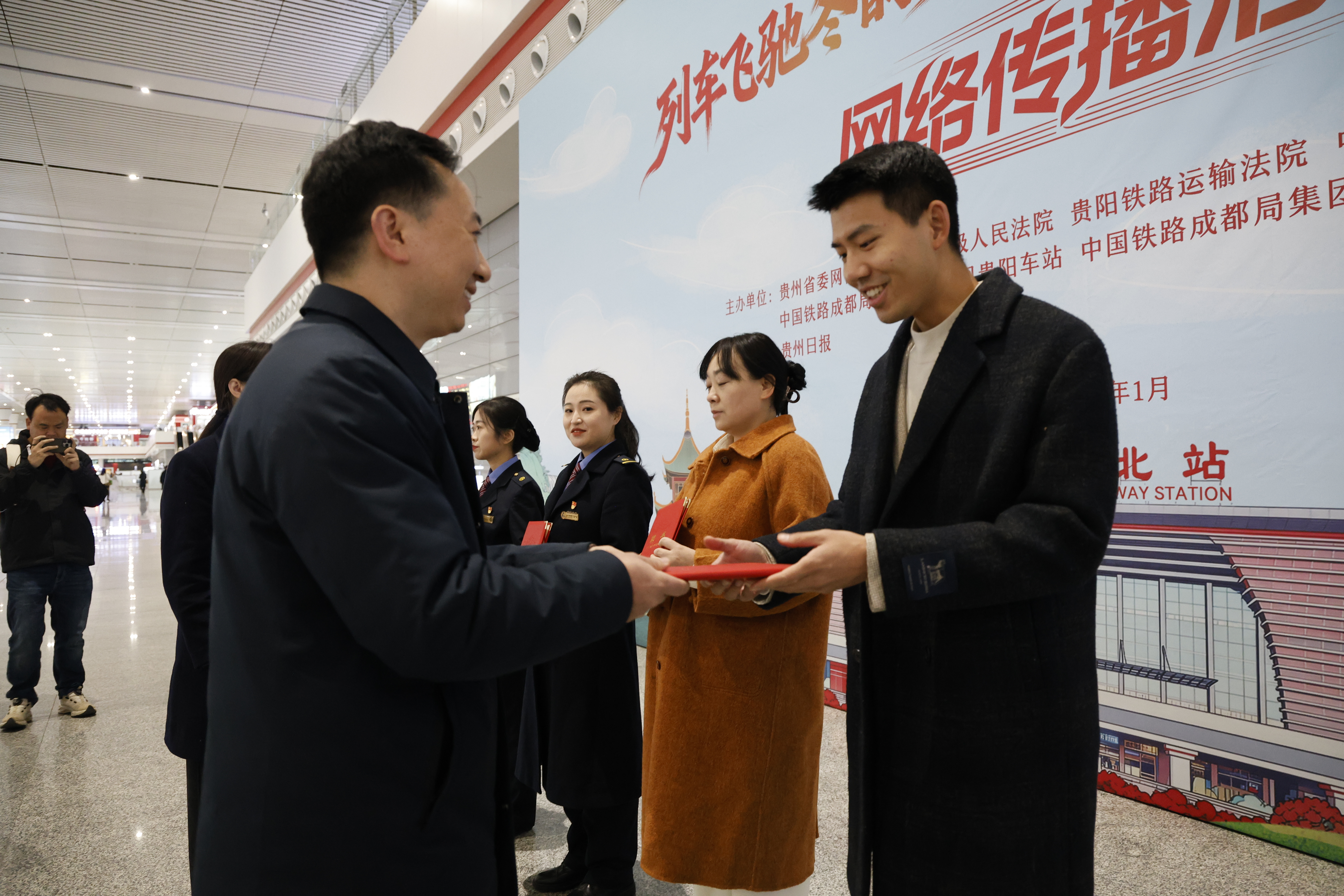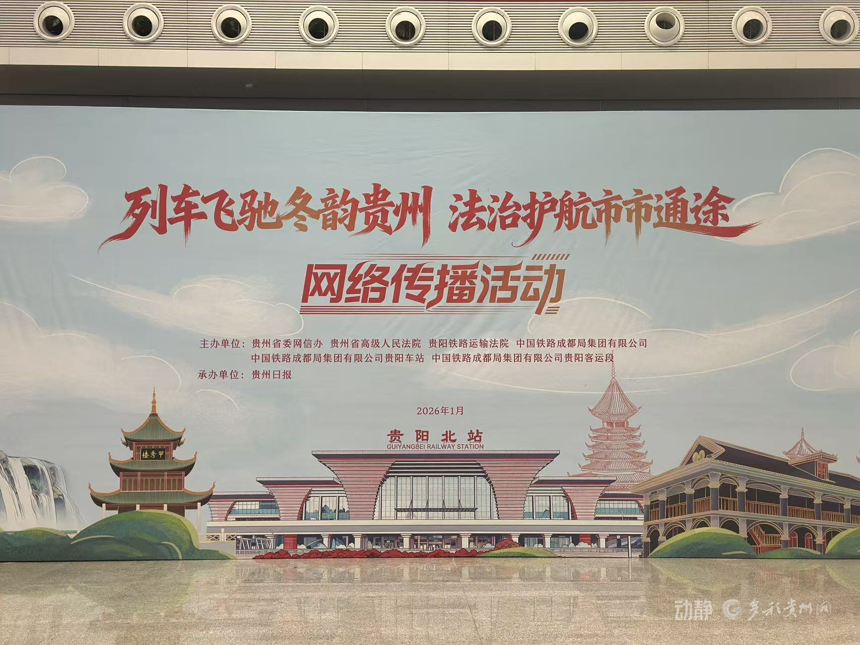 2026年1月20日上午,贵阳北站,一场别开生面的“列车飞驰冬韵贵州 法治护航市市通途”网络传播活动在此启动。人大代表、政协委员、媒体记者、网络红人及法院干警等30余人齐聚,共同开启一场“高铁+文旅+法治”的融合之旅。