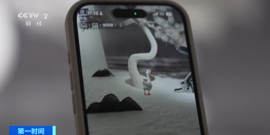 本次《中国奇谭》“造梦奇境”展览不仅还原了中式美学场景,更结合展中剧、3D互动魔镜、AI互动、AR虚拟等技术手段,进一步丰富观众的现场体验。在《鹅鹅鹅》剧集展区,打开手机就能看到有数只大鹅在展区中踱来踱去。
