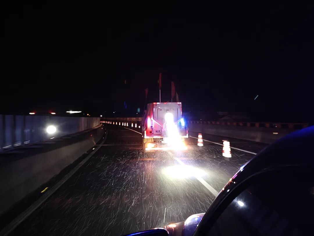 1月20日20时30分,纳晴高速“一路三方”应急联动指挥部迅速启动抗凝保通一级响应,对纳晴高速纳雍境内全段实施“只出不进”的预防性交通管制。关寨养护应急管理站第一时间响应指令,紧扣管制要求精准部署,召集队伍连夜奔赴一线,快速摆放安全锥、拉设警戒线,协助交警开展交通疏导,耐心引导司乘合理规划出行行程,确保管制与防控作业有序衔接。