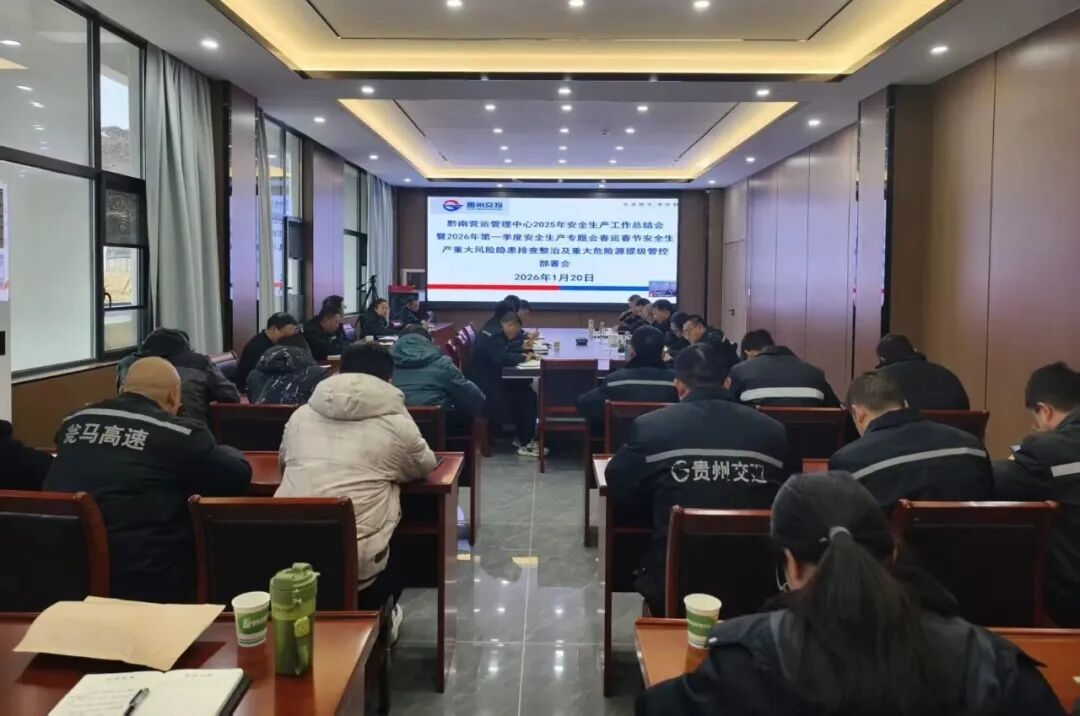 1月20日,黔南营运中心召开安全生产重点工作部署会,深入学习贯彻上级关于冬季抗凝保畅及春运春节安全生产工作系列文件精神,全面总结2025年安全生产责任落实、隐患排查整治、应急处置等工作成效,明确2026年安全生产工作要坚持问题导向、聚焦本质安全,全力抓实运营安全“保通、保畅、保安全”各项重点任务。