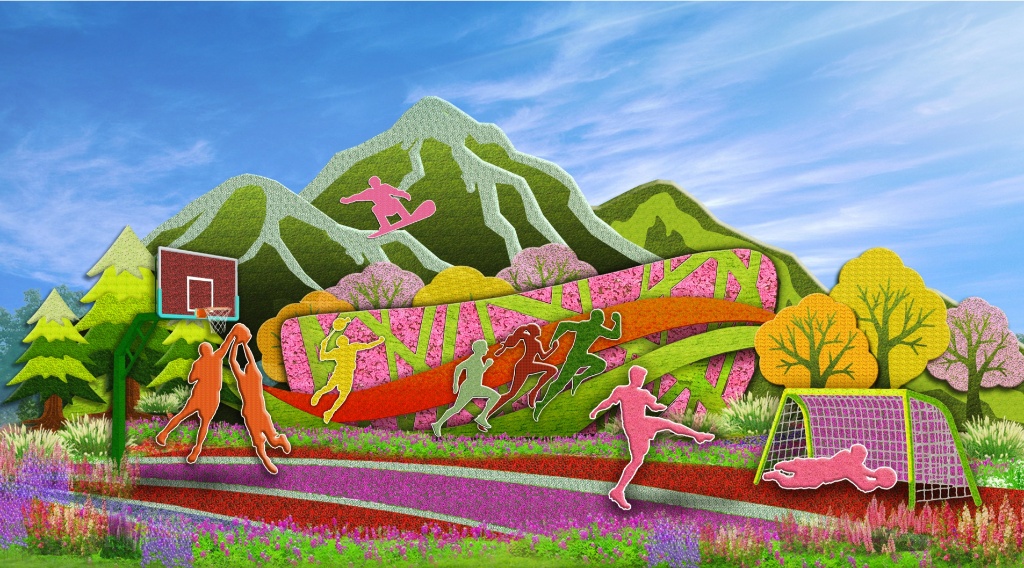 此外,西单东北角正搭建“全民健身”花坛。花坛以丰富多彩的全民健身为题材,配以篮球、羽毛球、跑步、滑雪等运动场景,寓意全民健身共享美好生活。