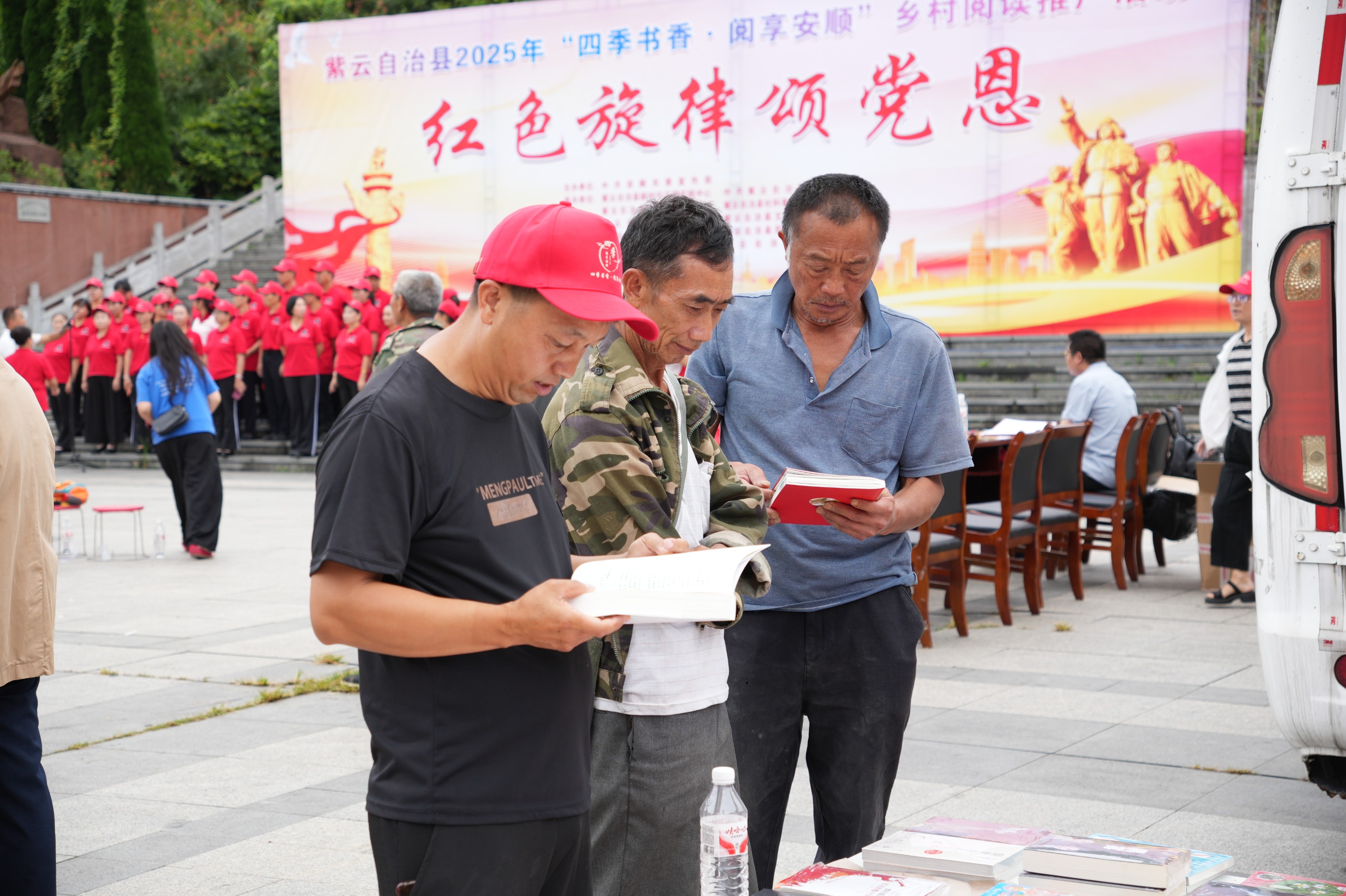 活动现场特设的红色书籍展区,陈列着《红军长征在安顺》等地方史料,许多村民第一次深入了解脚下这片土地的光荣故事。“原来我们每天走过的山路,就是当年红军长征走过的路!”一位老农捧着书籍感慨道。