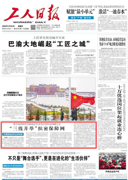今天(3月29日),《工人日报》刊发新闻《黔东南持续优化新就业形态劳动者权益保障生态【关爱新就业形态劳动者】“三线并举”织密保障网》。详细报道如下: