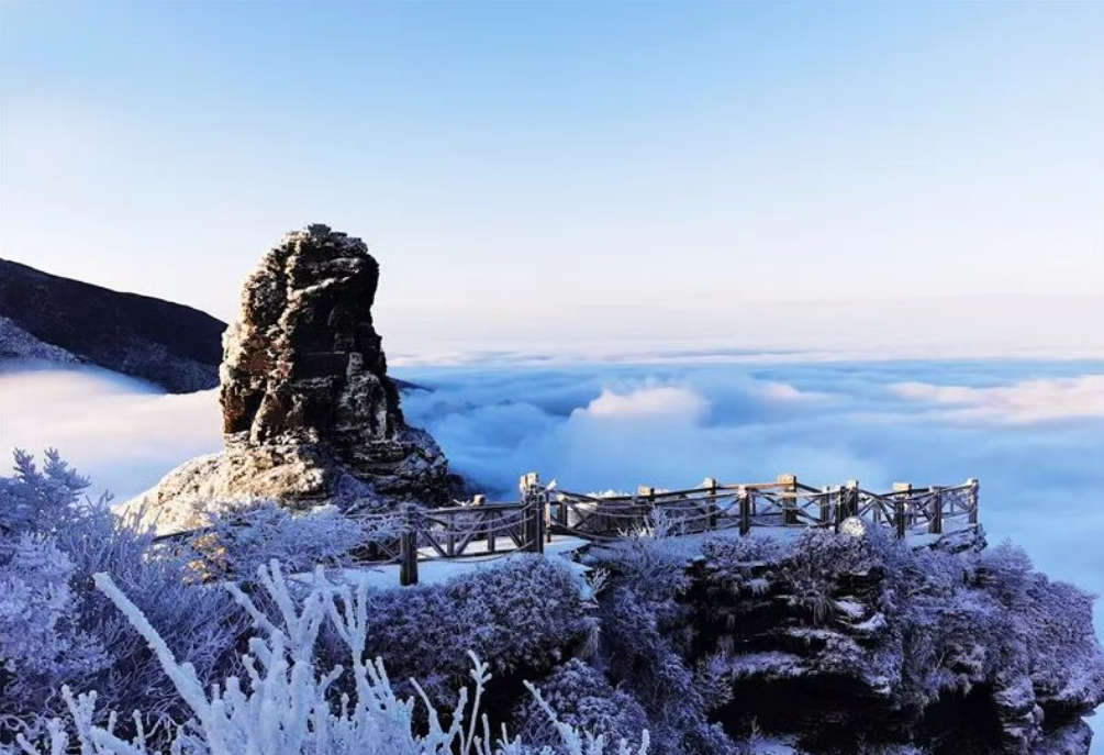 乘坐缆车,完成一次从凡尘到仙境的“穿越”。脚下是翻涌的云海,眼前是披着雾凇银装的峰林。亿万年的蘑菇石在冰晶点缀下,宛如神话遗存。当夕阳为金顶和雪线镀上金边,那一刻的壮阔与温柔,能瞬间占满你手机的全部内存,也定格为此生难忘的回忆。