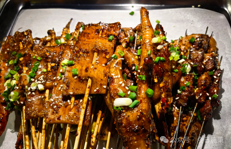 6.特色烤肉:经过特别腌制,口感醇厚麻香。