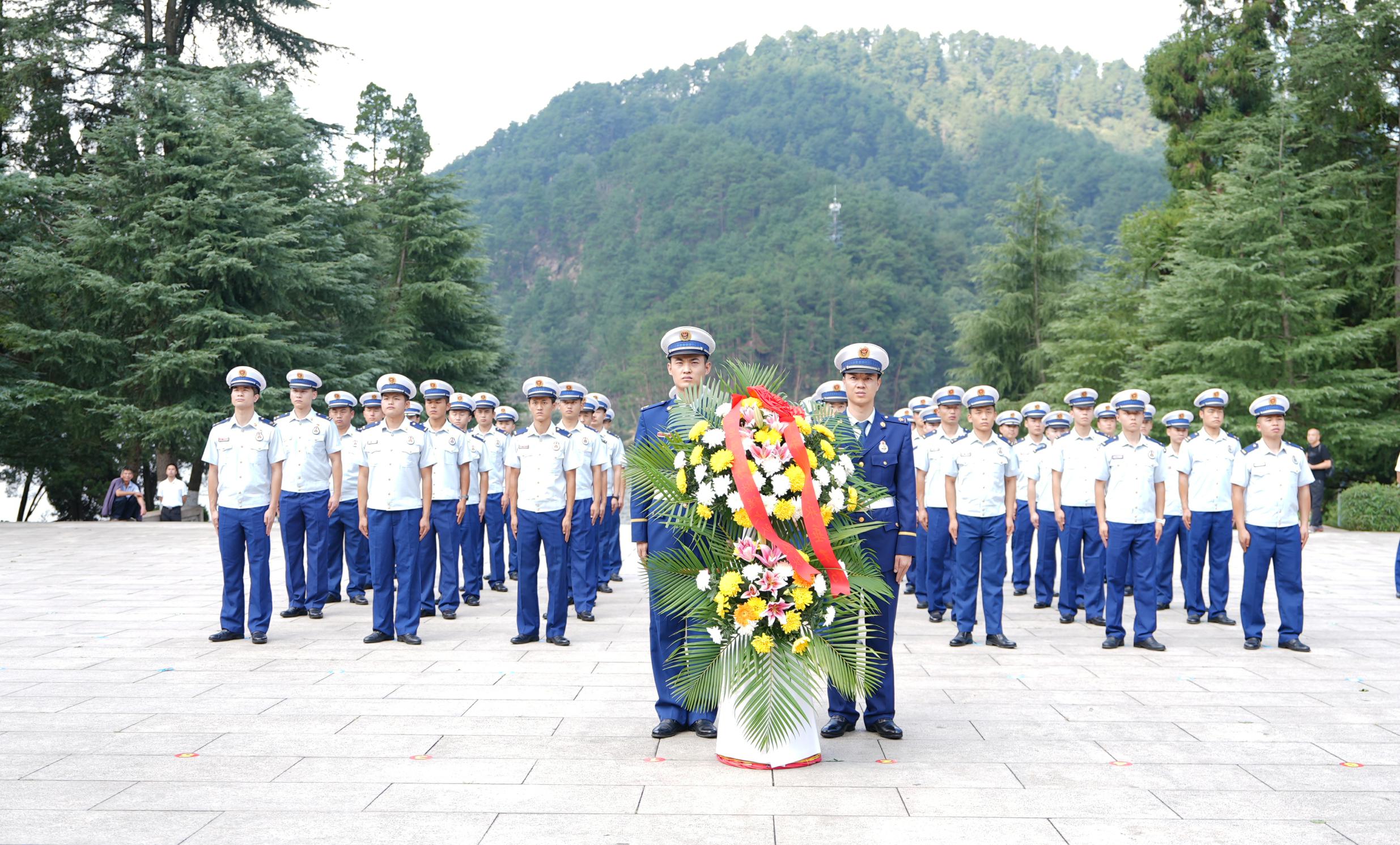 在祭奠活动中,大队指战员着装整齐列队在革命烈士纪念碑前,脱帽、肃立、默哀三分钟,表达敬意、寄托对革命先烈的缅怀与哀思。同时,两名礼兵手抬花篮缓步走向烈士纪念碑,将花篮摆放到纪念碑基座上。随后,每人依次向烈士们献上鲜花,表达深切的怀念和崇高的敬意,看着墓碑上一个个的名字,全体指战员都肃然起敬,革命精神在每个人心底传承。