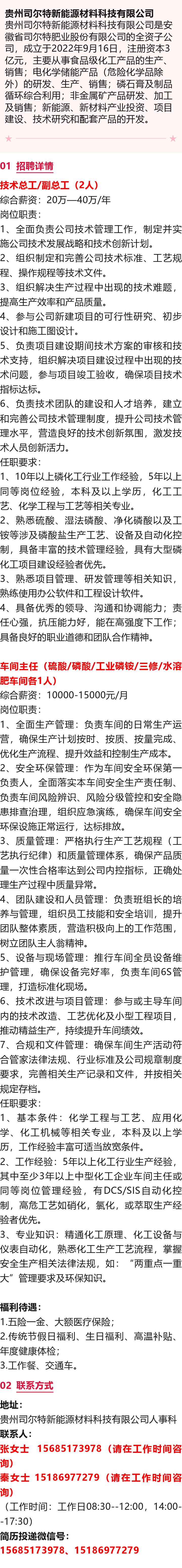 贵州司尔特新能源材料科技有限公司招聘!年薪可达40万!