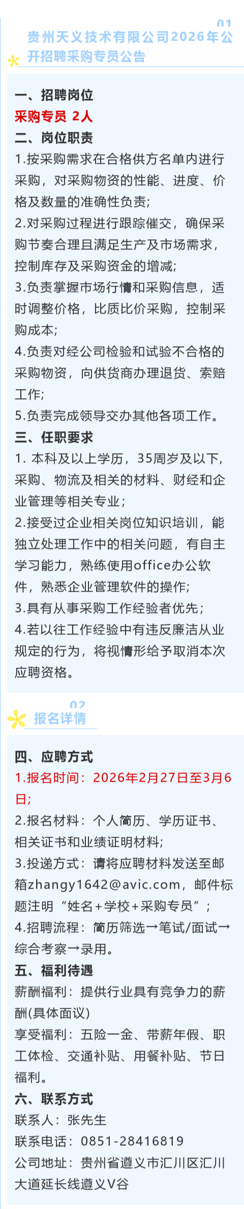 【国企】贵州天义技术有限公司招聘!五险一金、带薪年假、用餐补贴等!