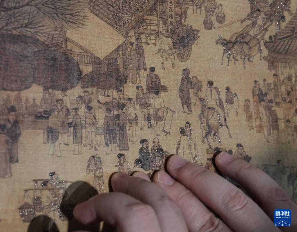 10月13日,视障人士在发布会后,欣赏无障碍版《触摸<清明上河图>》。新华社记者 殷刚 摄