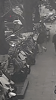 迅速翻越街边护栏